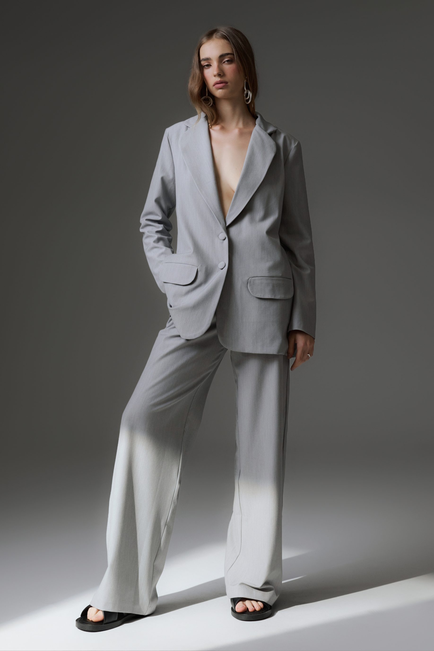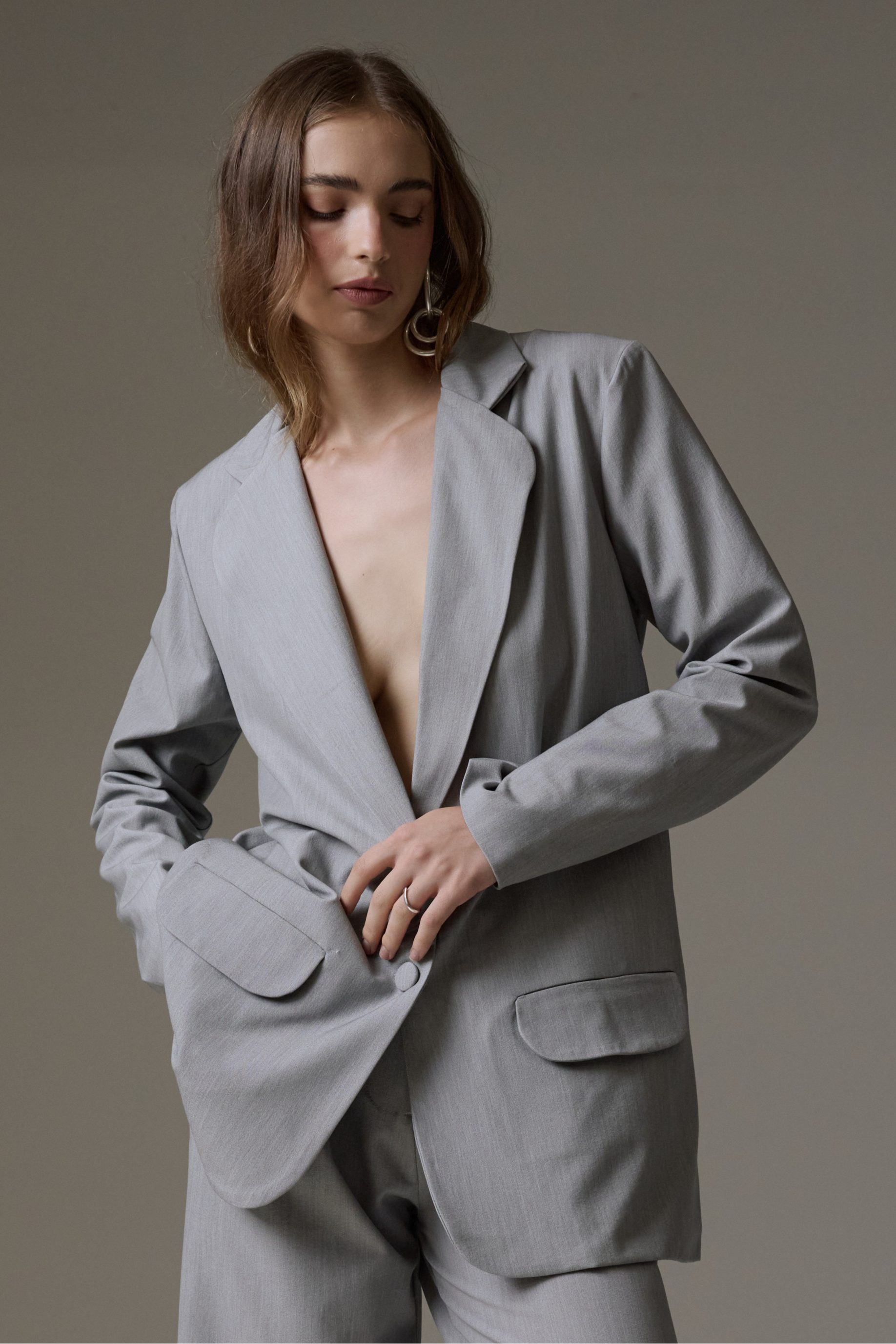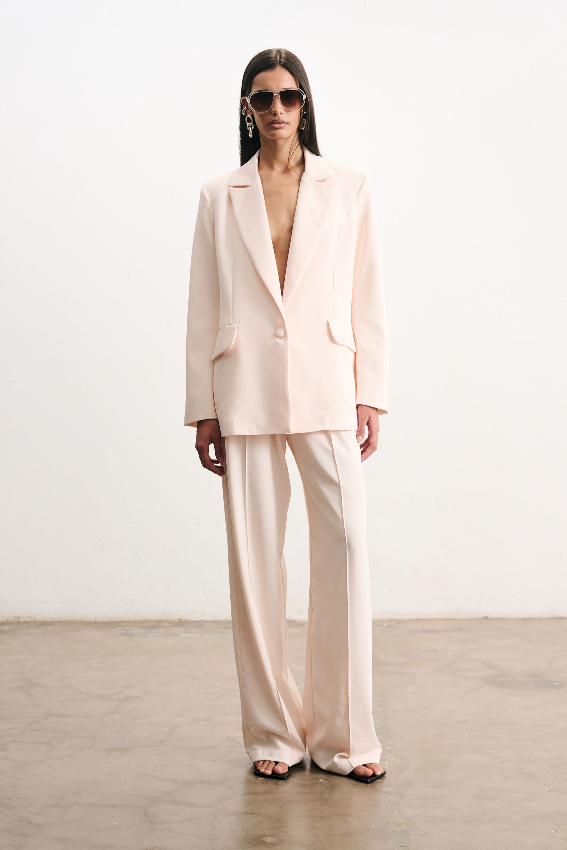 R$648,00 6 x R$108,00Blazer alongado em cetim encorpado, modelagem reta e oversized. Possui lapela clássica, bolsos laterais, fechamento frontal por botão forrado e acabamento interno de alta qualidade. Uma peça atemporal que une elegância e versatilidade.