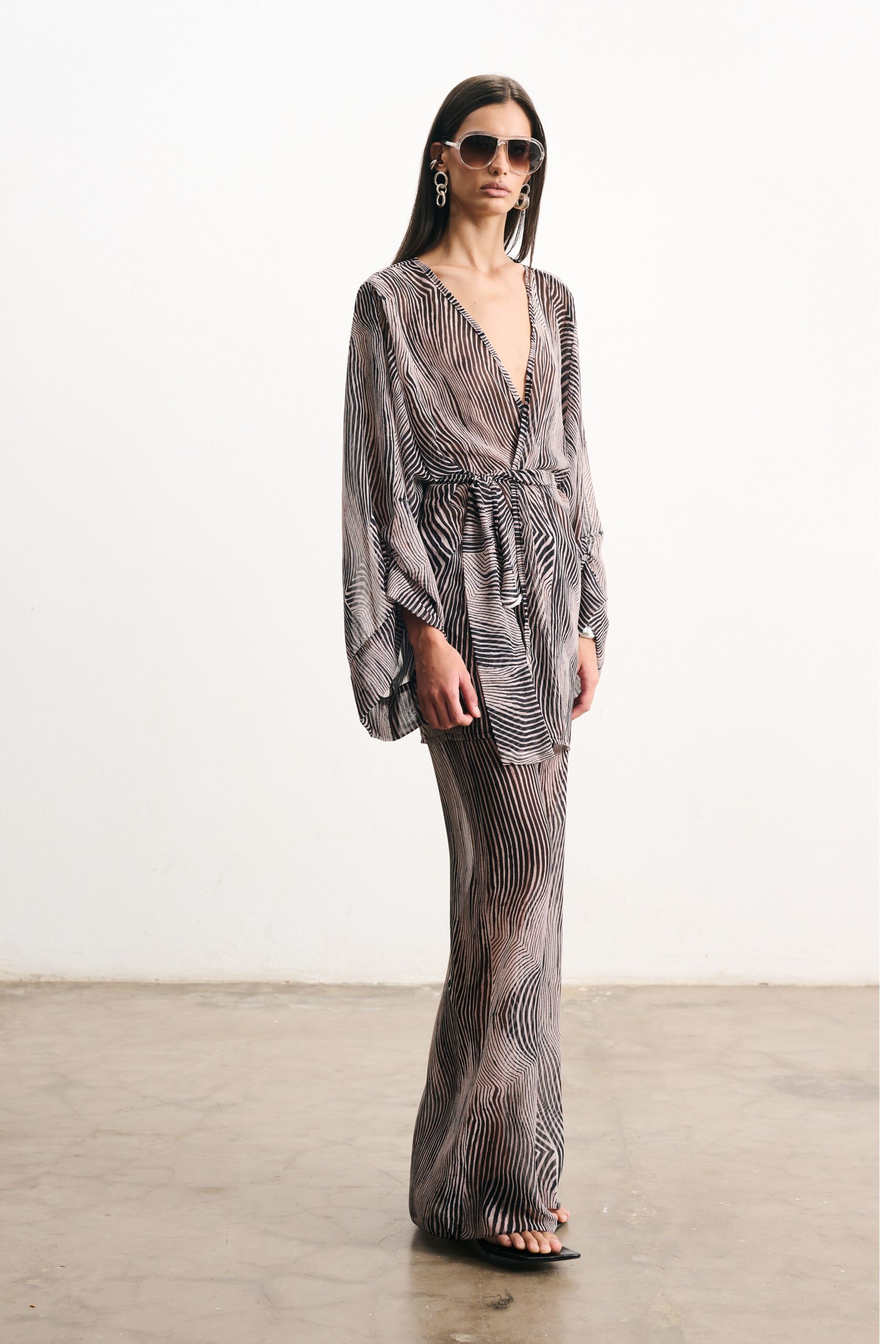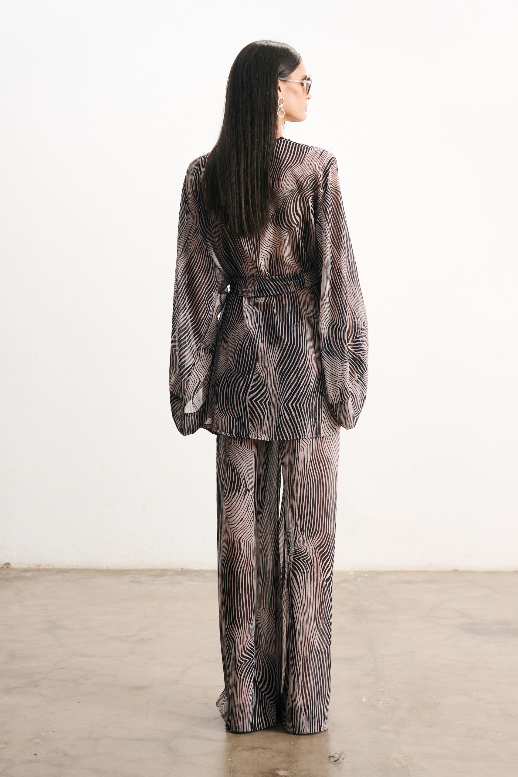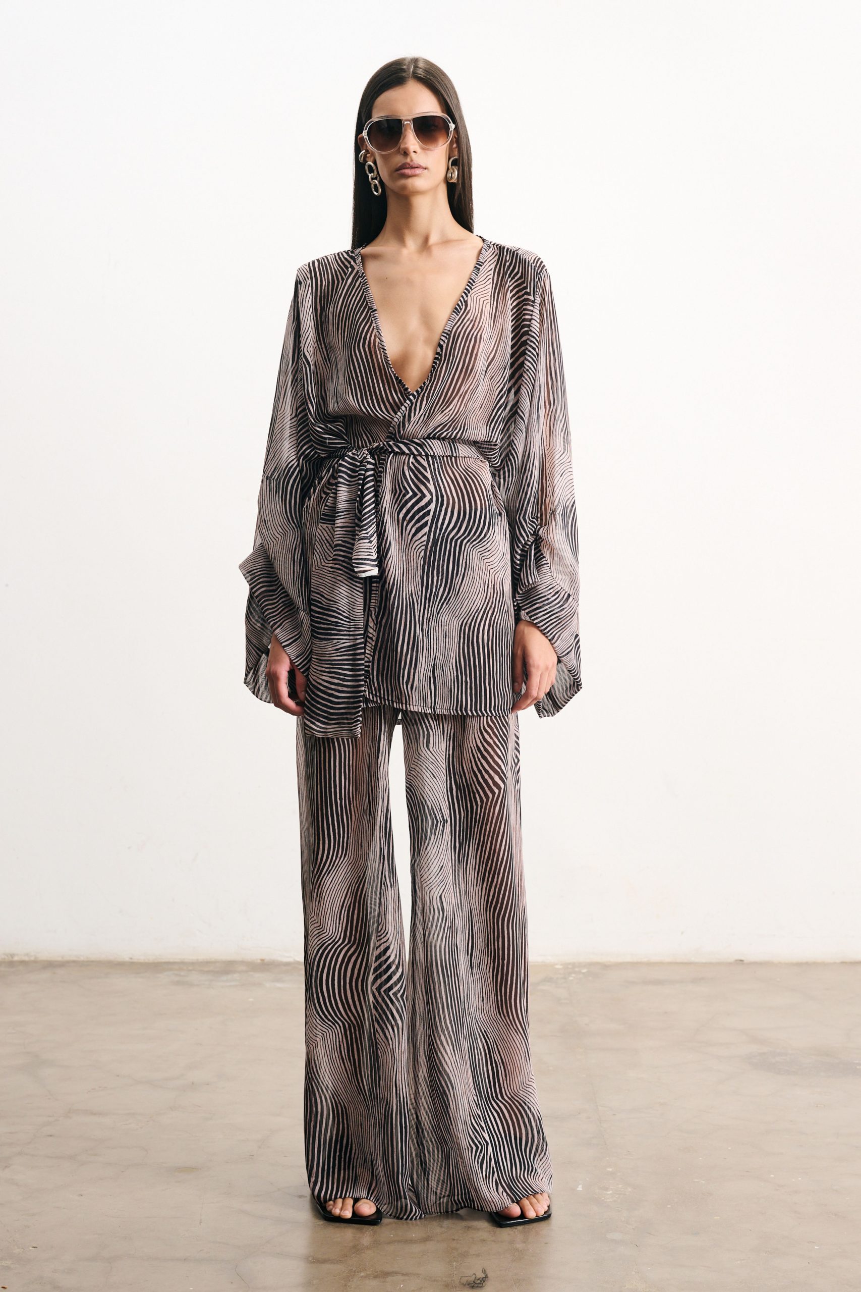 Calça em musseline com estampa digital exclusiva. Cós elástico e amarração frontal que ajustam a peça no corpo. Modelagem cortada em viés, que proporciona caimento único e perfeito, modelando a silhueta. Caimento fluído e levemente evasê.