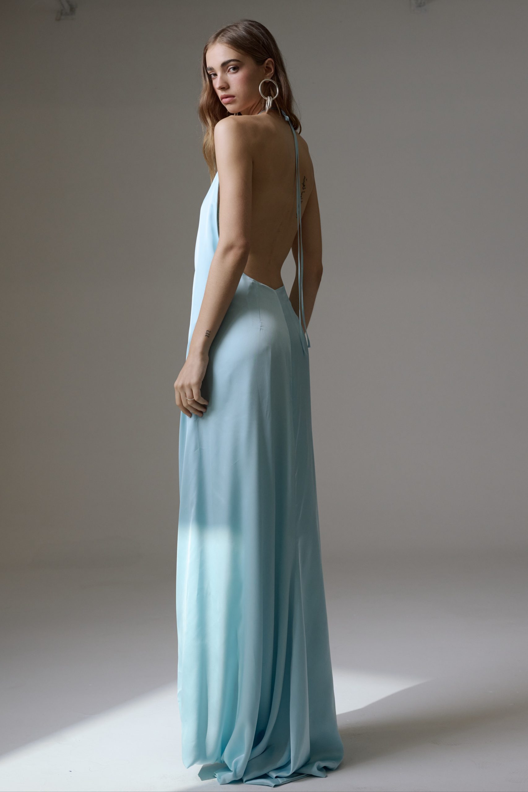 Vestido Longo Cetim Ice Blue