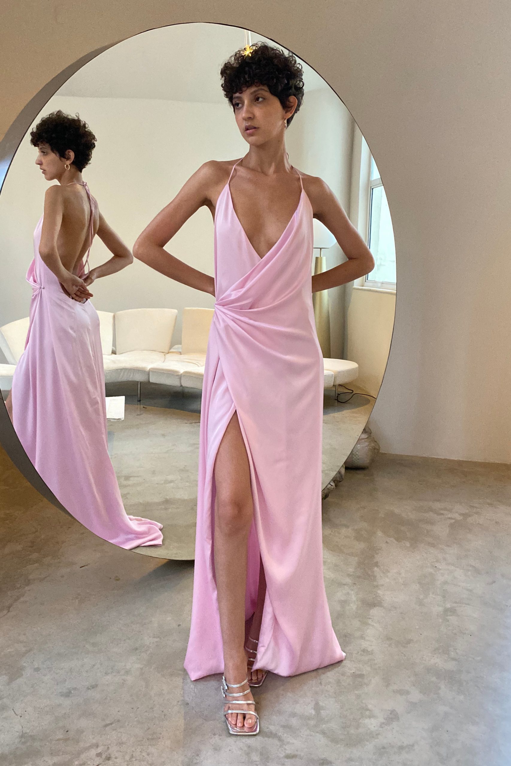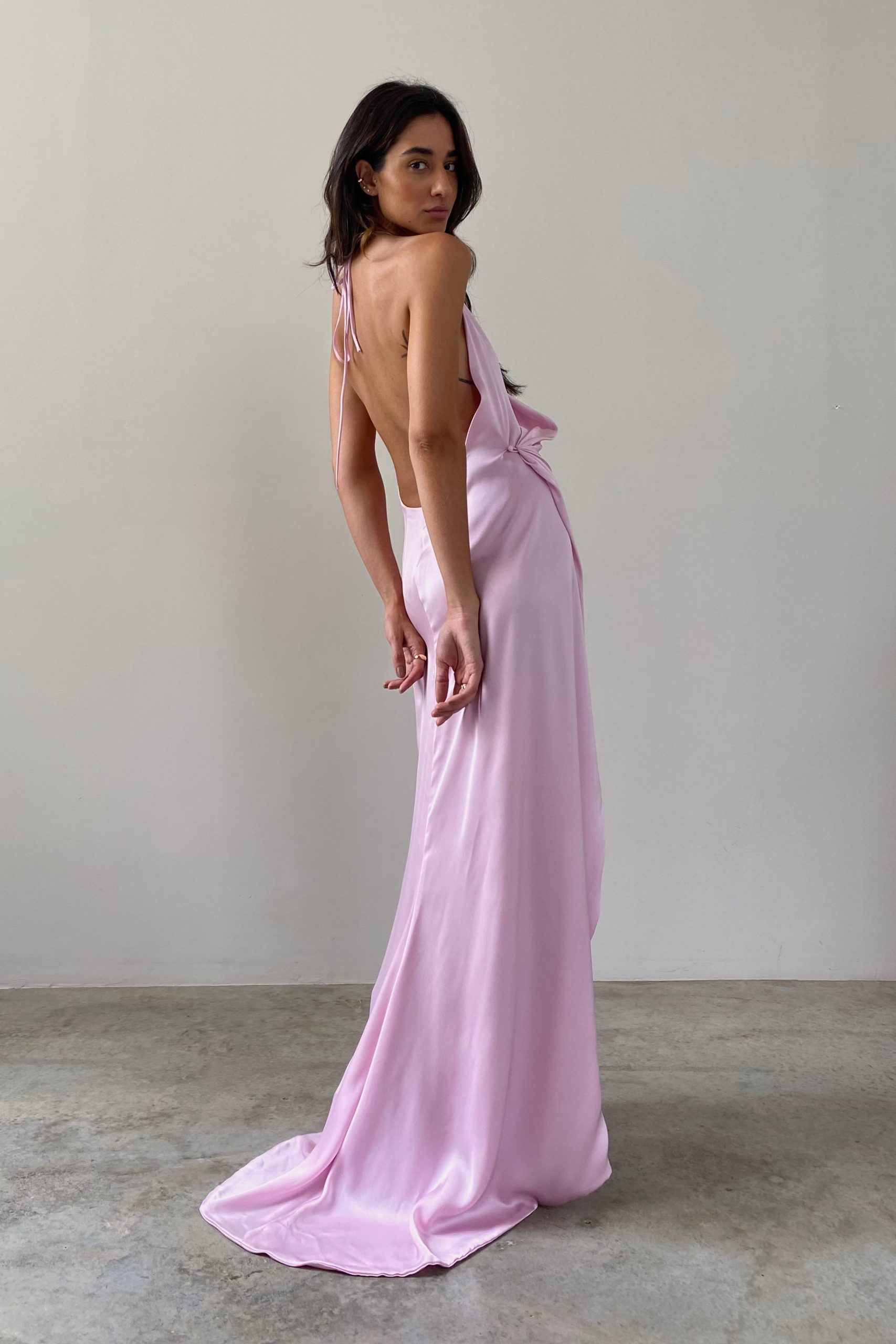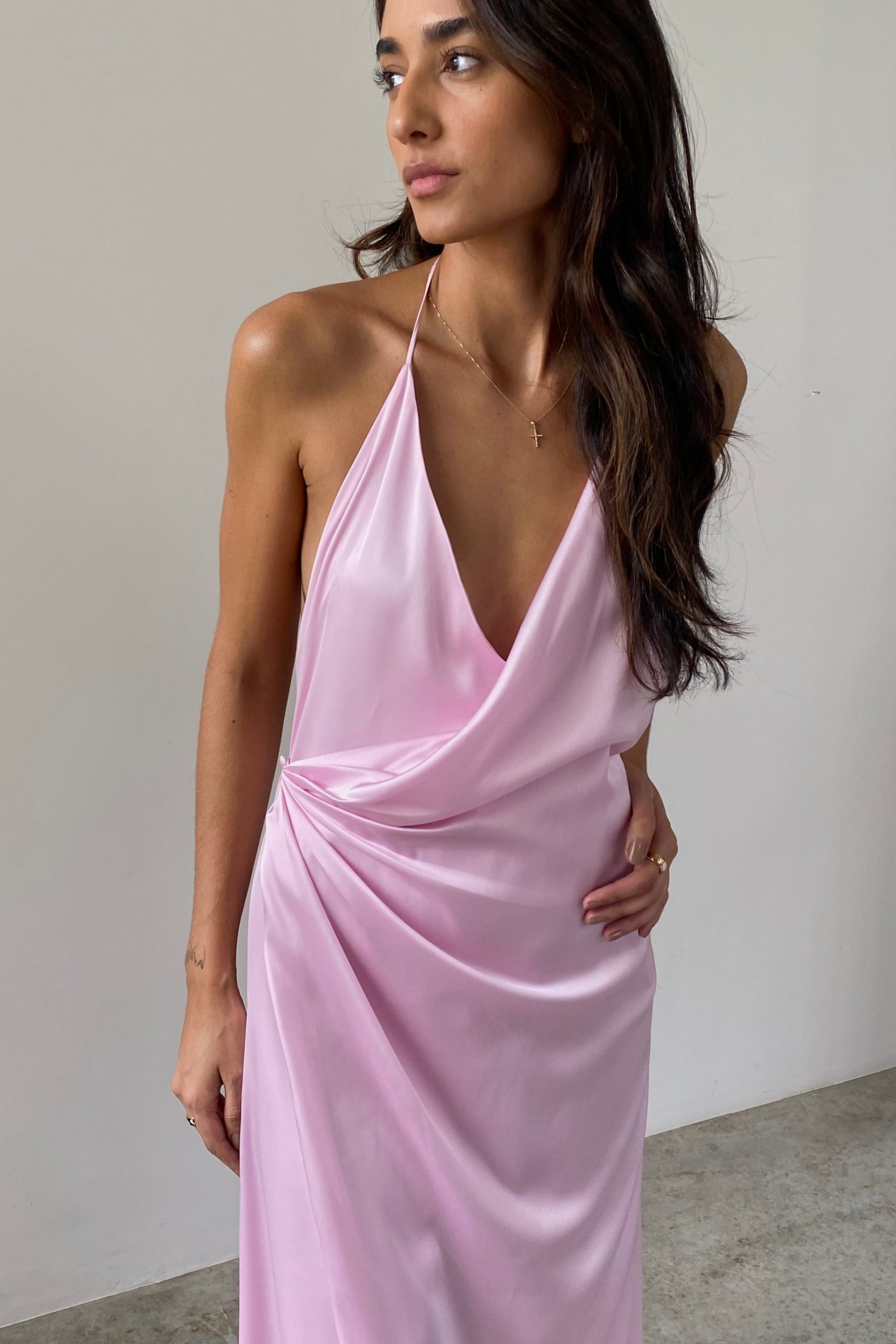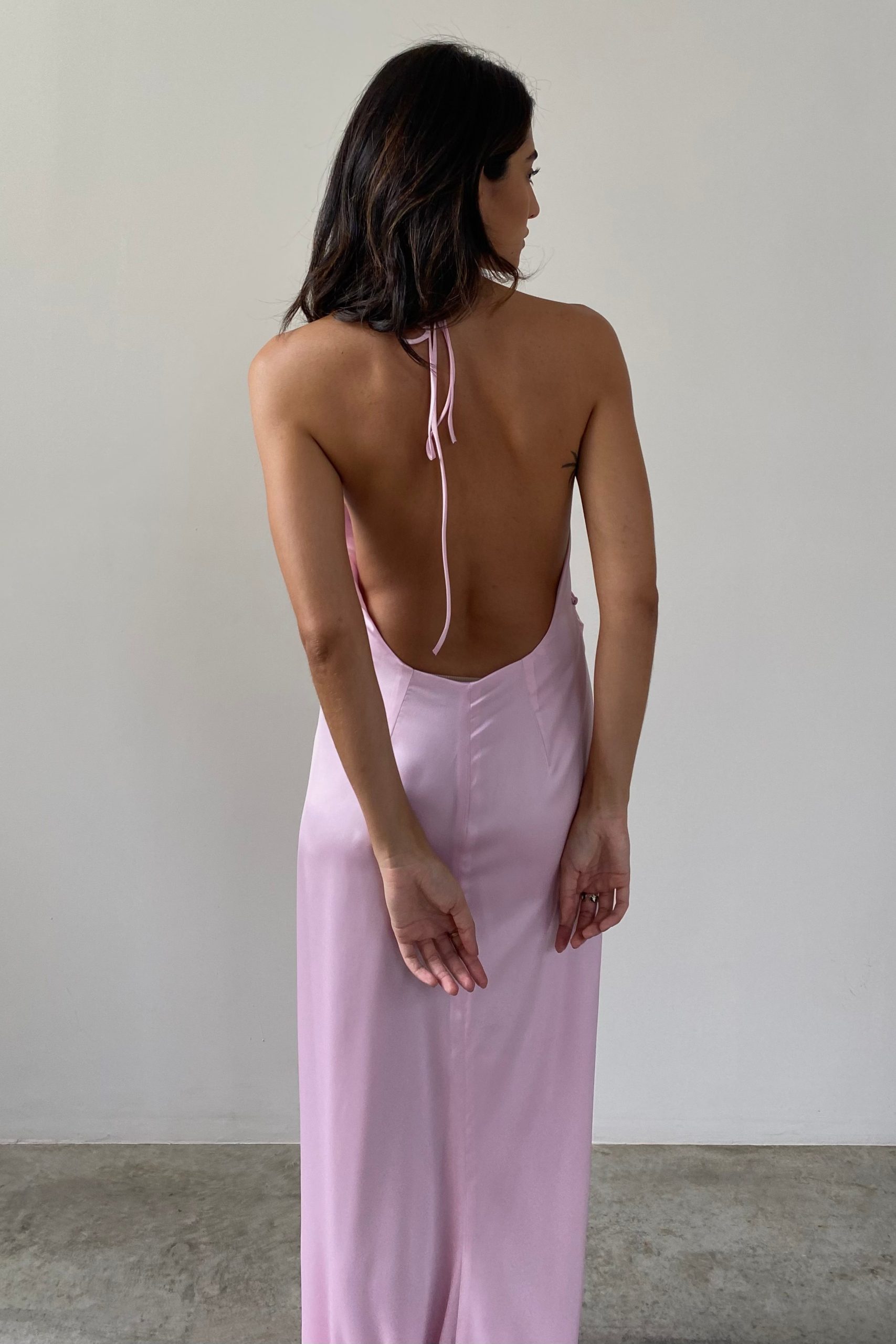 Vestido Longo Cetim Rosa Giz